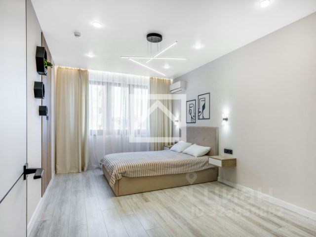 В квартире можно легко зонировать пространство, создавая отдельные зоны для отдыха и сна, что делает её удобной для длительного проживания.