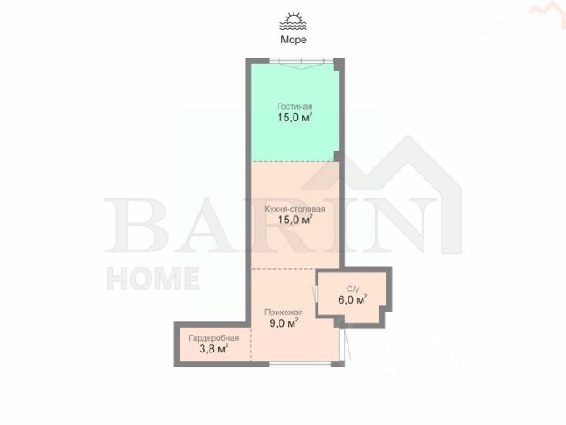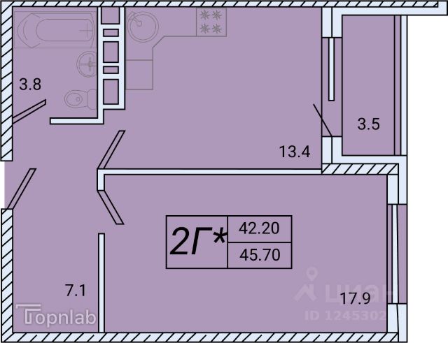 Гостиная/комната — 17,1 м², светлое и уютное пространство, которое можно зонировать по вашему желанию (спальня и гостиная или просто зона отдыха).