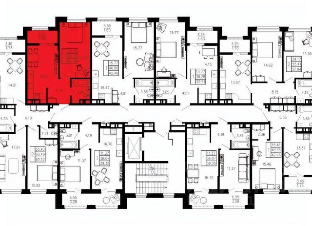 В каждом корпусе предусмотрена одна входная группа с нишей для шкафа или гардеробной и уборными. В каждом корпусе установлено по 4 лифта: по 2 пассажирских и грузопассажирских.