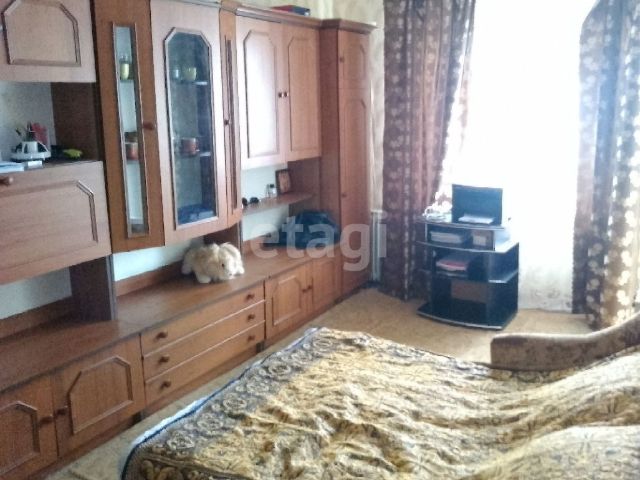 Расположена в середине дома , окна квартиры выходят на две противоположные стороны. Просторная (площадь большой двухкомнатной квартиры), уютная, теплая.