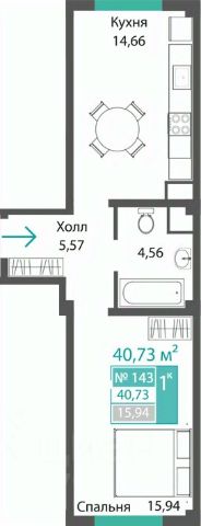 Общая площадь: 44.66 кв.м.