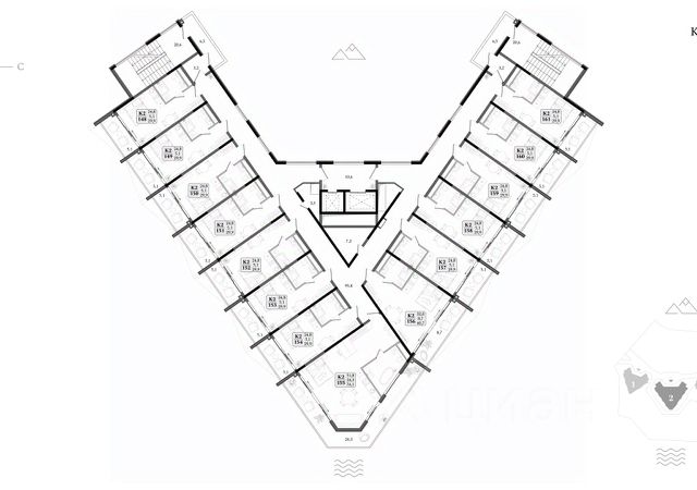 В комплексе представлена широкая линейка планировочных решений от студий до двухуровневых пентхаусов на последних этажах.