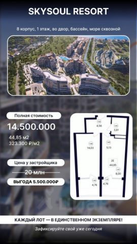 "SkySoul Resort" — новый жилой комплекс от застройщика СЗ ДК "СКГ", предлагающий комфортное жильё для тех, кто ценит качество и удобство. В комплексе представлены апартаменты различных планировок: от студий до двухкомнатных. Площадь апартаментов варьируется от 27,4 до 86 м². Некоторые варианты включают большие террасы, где можно наслаждаться видом на окружающую местность. Транспортная доступность ЖК "SkySoul Resort" расположен в удобном месте, обеспечивающем лёгкий доступ до любой точки города. Рядом с комплексом на улице Ленина есть остановка общественного транспорта, откуда ходят маршруты 30, 101, 107 в направлении Курортного и Симферополя. До автостанции можно дойти за 5 минут, до трассы "Таврида" — всего 15 метров, а до железнодорожного вокзала в Феодосии — 30 метров. Время в пути до Керченского моста составляет примерно 1 час 40 минут, до аэропорта — около 2 часов, до Севастополя — примерно 2,5 часа. Инфраструктура На территории ЖК будут современные игровые пространства для детей, детский клуб, спортивные площадки для футбола, волейбола и баскетбола, а также теннисные корты. Любители активного образа жизни оценят тренажёрные залы с современным оборудованием и фитнес-студии. Прогуляться и насладиться природой можно будет на благоустроенной набережной реки с велодорожками и зонами для отдыха. Авторский ландшафтный дизайн создаст атмосферу уюта и гармонии. Поблизости будут рестораны и кафе с блюдами средиземноморской, европейской и традиционной крымской кухни. Планируется вместительная бесплатная парковочная зона на 1200 машино-мест. Территория комплекса будет закрыта от посторонних, будет действовать пропускная система и вестись круглосуточное видеонаблюдение, что обеспечит безопасность жителей и их имущества. В планах развития — создание современной экологически чистой набережной, строительство очистных сооружений, озеленение, увеличение пляжной территории и построение гидротехнических сооружений. Архитектура ЖК "SkySoul Resort" строится по монолитно-каркасной технологии. Фасады имеют красивое остекление, панорамное остекление лоджий. Входная группа каждого корпуса оформлена в уникальном стиле: используется керамогранит, а сверху — камень травертин с мраморной плитой, на которой выгравированы цитаты известных русских деятелей культуры. Кровля эксплуатируемая, представляет собой многофункциональное пространство с элементами ландшафтного дизайна и зонами для отдыха. На крыше будут декоративные растения, деревья, кустарники и цветочные клумбы. В каждом корпусе предусмотрена одна входная группа с нишей для шкафа или гардеробной и уборными. В каждом корпусе установлено по 4 лифта: по 2 пассажирских и грузопассажирских. Варианты отделки включают предчистовую "white box" с ровной стяжкой пола и финишной штукатуркой стен, а также два варианта отделки — "стандарт" и "комфорт".