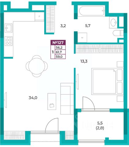 - компактные студии от 34,9 м