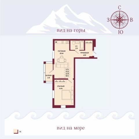 В квартире панорамные окна с выходом на море, благодаря чему в квартире всегда светло.