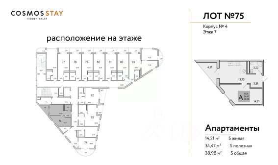 COSMOS STAY HIDDEN YALTA - это комплекс апартаментов из 5 корпусов для отдыха с собственной развитой инфраструктурой. Находится в Ялте у подножья горы Могаби на южном берегу Крыма, вблизи с живописным горно-лесным заповедником. Из апартаментов комплекса открываются завораживающие виды на горные вершины и Чёрное море. В шаговой доступности могабинские озера. Находится на подножии Ай-Петри, что позволяет комфортно добраться до горных склонов. До центра Ялты 10 минут на машине, как и до моря. Концепция апарт-комплекса предполагает круглогодичный комфортный отдых в формате retreat, с заботой о ментальном и физическом здоровье. Всё для Вашего восстановления и перезагрузки, для размеренной и комфортной жизни. Целебный морской воздух и благодатный климат. В комплексе создана атмосфера респектабельной среды для жизни: - собственная инфраструктура; - свой зеленый двор; - безопасность; - детские пространства; - собственная инфраструктура; - свой зеленый двор; - безопасность; - детские пространства; - лаунж-зоны; - будет присвоен статус 3 звезды и работать отельный оператор; - пространства для медитаций и занятий йогой; - ресторан; - индивидуальные келлеры для габаритного инвентаря; - всесезонный бассейн; Консьерж-сервис полного цикла обслуживания с опцией управления недвижимостью - разрешит любой возникающий вопрос. Строительство ведется при проектном финансировании СБЕРБАНКА, ФЗ-214. Продажа через эскроу-счет без комиссий. Завершение строительства - 3 квартал 2026 года Передача ключей до 31.12.2026 Ремонт и оснащение апартаментов: декабрь 2026-апрель 2027 Запуск апарт-отеля в управление - июнь 2027