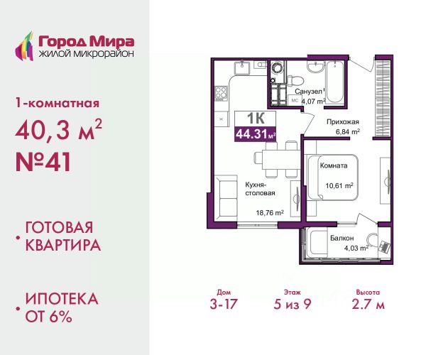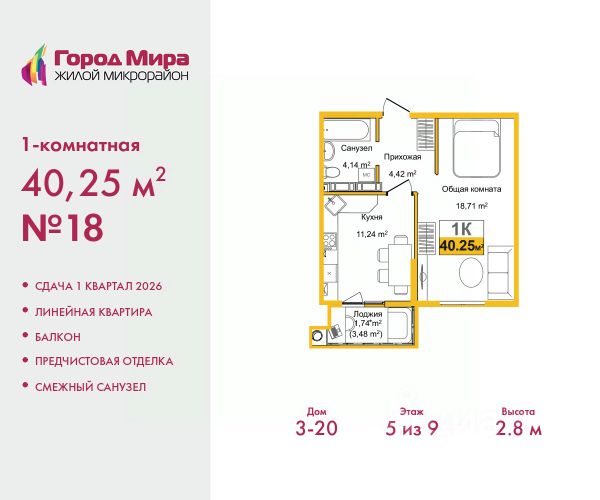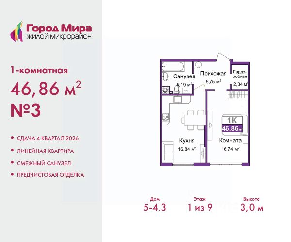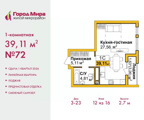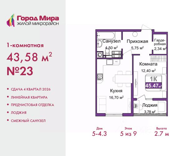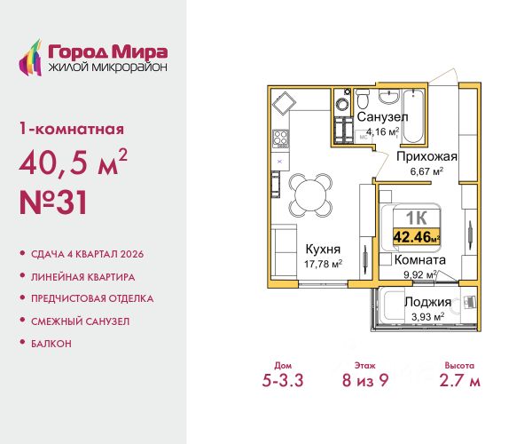 1-комн. квартира с предчистовой отделкой в ЖМ "Город Мира" на 7 этаже. Общая площадь: 36.48 кв.м., жилая: 15.57 кв.м., площадь кухни: 8.75 кв.м. Все окна выходят на одну сторону. В квартире одна лоджия, один совмещенный санузел. Высота потолков 2.7 м. Квартиры в ЖК "Город Мира" ваш комфорт начинается здесь! "Город Мира" это масштабный жилой комплекс, созданный для тех, кто ценит комфорт, безопасность и гармонию с природой. Здесь продумана каждая деталь: от удобной инфраструктуры до эргономичных планировок квартир. В 2024 году микрорайон "Город Мира" победил в номинации "Лучший экологический проект года в сфере строительства" по версии премии Crimea Urban Awards. Почему выбирают наш комплекс: - Зеленый оазис живите среди природы в черте города. - Всё под рукой 2 детских сада, магазины, фитнес, медицина. - Безопасность: закрытая территория с видеонаблюдением. Наши квартиры: - Просторные планировки с кладовыми. - Лоджии с остеклением. - Автономное отопление: платите только за реальное потребление. - Предчистовая отделка, включает стяжку пола, без штукатурки стен. - Консьерж-сервис и подземный паркинг. Инфраструктура комплекса: - Детские и спортивные площадки. - Зоны отдыха с беседками. - Фитнес-клубы и салоны красоты. - Будущая школа на территории, уже функционируют два детских сада. Выгодные условия покупки: - Ипотека от 5,5%, военная ипотека от 5,5%. - Рассрочка. - Материнский капитал на первоначальный взнос. Квартира находится в корпусе 5_31. Дом монолитный, одноподъездный, высотой 9 этажей. В подъезде 1 грузовой лифт. Окончание строительства - 4 квартал 2026 года. Оформление сделки по договору долевого участия. #zmDoee 1-комнатная квартира в новостройке с отделкой в районе Центральный в городе Симферополь.