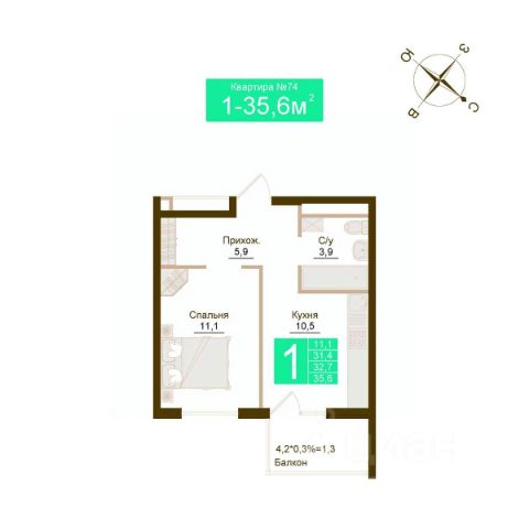 • ✅ Минимальная площадь: 32,3 м²