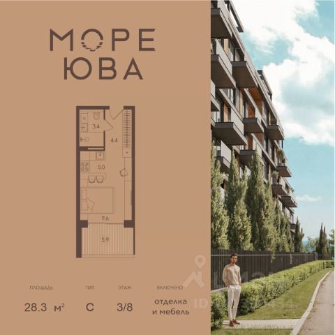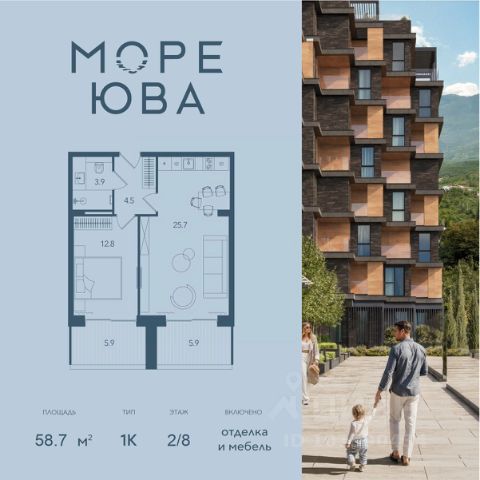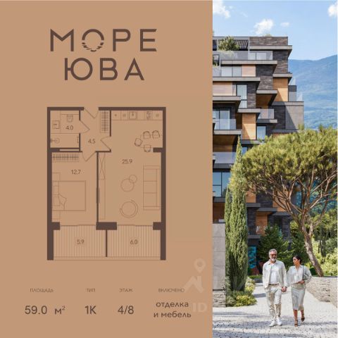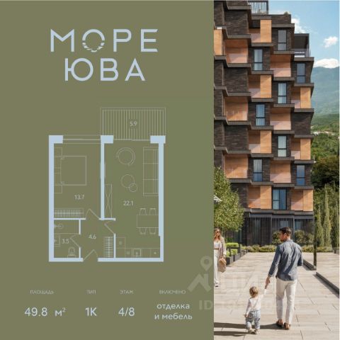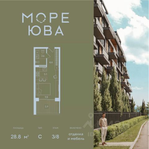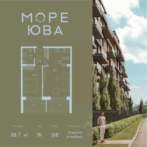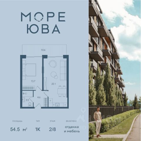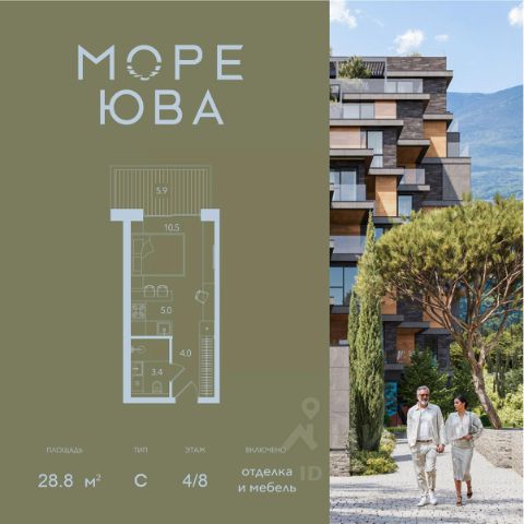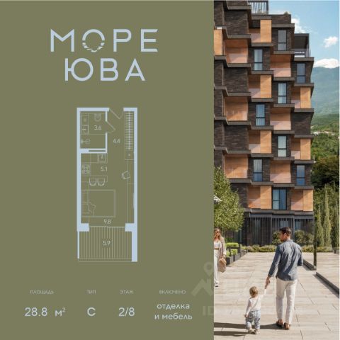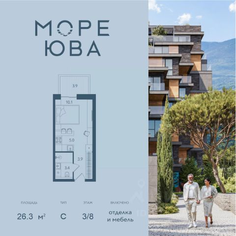 Однокомнатный апартамент площадью 42,56 м2 с видом на море в новостройке Бизнес-класса ЖК Море Ялта в уютном городе Гурзуф.