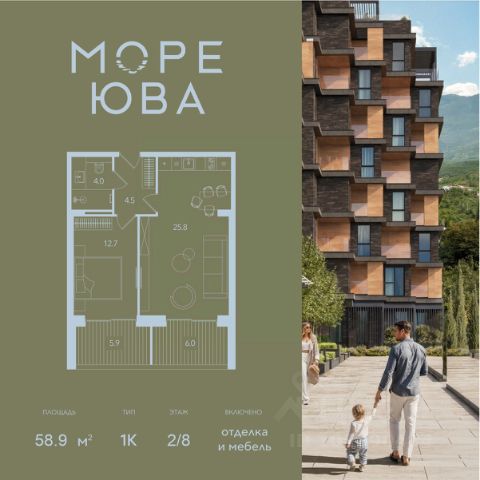 More.Yalta — это 8 корпусов высотой 8 этажей. Здесь представлены студии и 13-комнатные апартаменты площадью от 30 до 120 м². Во всех спроектированы балконы, есть варианты с гардеробными, нишами под встроенные шкафы, 2 санузлами. Апартаменты в More.Yalta сдаются с чистовой отделкой, которая включена в цену.