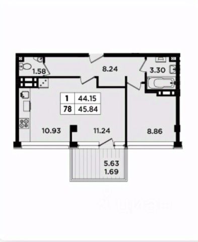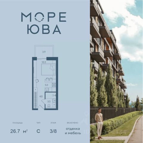 Сам апартамент включает в себя изолированную спальню с балконом, площадью 14 кв. м., наблюдать закаты и рассветы прям из своей спальни, не это ли сказка? Кухня-гостиная 18кв. м., Санузел и просторная прихожая, в которой можно выделить место под гардеробную.