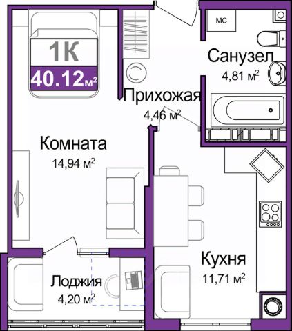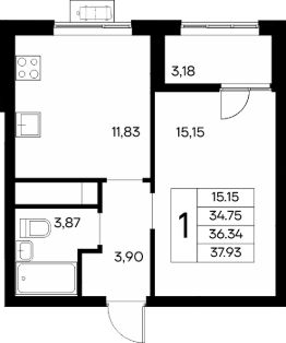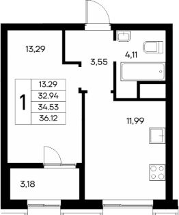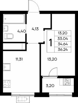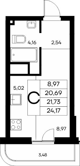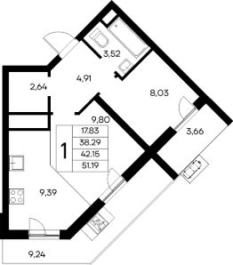 Общая площадь: 51.25