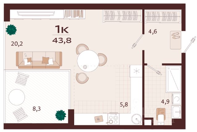 More.Yalta — это 8 корпусов высотой 8 этажей. Здесь представлены студии и 13-комнатные апартаменты площадью от 30 до 120 м². Во всех спроектированы балконы, есть варианты с гардеробными, нишами под встроенные шкафы, 2 санузлами. Апартаменты в More.Yalta сдаются с чистовой отделкой, которая включена в цену.