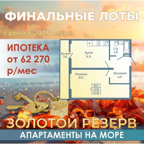 Продаются 1-комнатные апартаменты в строящемся доме (Строение 1), срок сдачи: IV-кв. 2025, общей площадью 35.02 кв.м., на 4 этаже. "Бирюзовая бухта" - трехсекционный восьмиэтажный апартаментный комплекс с развитой инфраструктурой, расположенный в экологически чистом районе города, в 15-ти минутах ходьбы до благоустроенной набережной и оборудованного, бесплатного песчаного пляжа. На территории комплекса и рядом с ним все, что нужно для комфортного проживания и отдыха - кафе, магазины, спортзал, зеленая территория, уютный двор. На крыше "Бирюзовой бухта" организовано дополнительное общественное пространство с шезлонгами, зонами отдыха с wi-fi, закрытыми от солнца столиками, лежаками. Здесь можно загорать, отдыхать, читать, наслаждаться морским бризом, любоваться рассветами и закатами. "Бирюзовая бухта" расположен в непосредственной близости от живописной набережной Судака, обрамленной деревьями, кустарниками и цветниками и идеально подходящей для променада и занятий спортом на открытом воздухе. Прогулка до песчаного пляжа займет максимум 15 минут. Причем идти придется не под палящим солнцем, а по кипарисовой аллее. Одна из "фишек" комплекса апартаментов - французское остекление. Преимущества такого остекления - максимальная естественная освещенность террасы и смежной с ним комнаты, визуальное расширение пространства. Такое остекление позволяет в полной мере насладиться прекрасными видами из окон комплекса. Мы позаботились о том, чтобы проживание в комплексе "Бирюзовая бухта" было комфортным и безопасным. Помимо закрытой территории, камер видеонаблюдения, в апартаментах будет работать ресепшн. Продам 1-комнатную квартиру от застройщика в республике Крым.