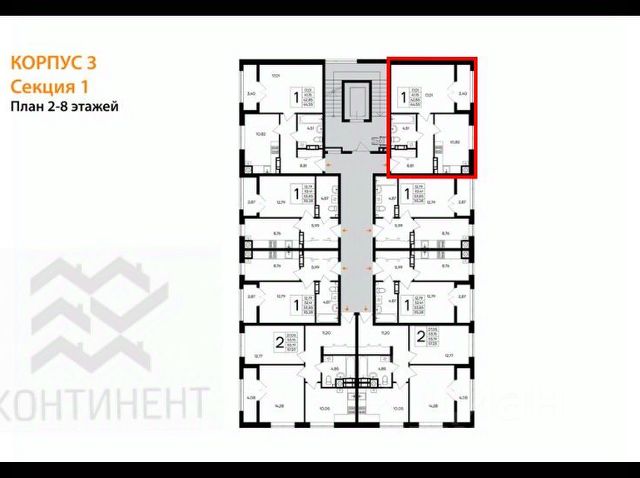 Продаётся квартира 261 площадью 46,64 м2 в новом ЖК СОК