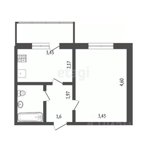 Планировка: коридор 1,9 м2, комнаты смежные 11,8 и 14,5 м2 соответственно, совмещенный санузел 4,8 м2, коридор 3,4 м2, кухня 5,6 м2.