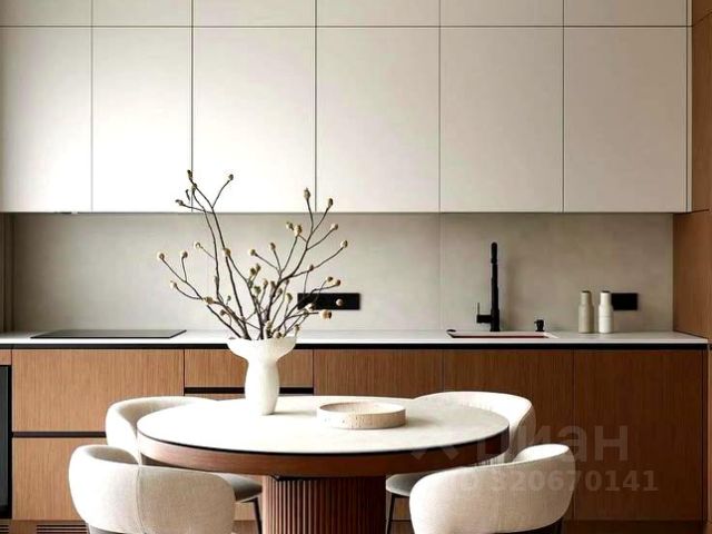 Меблированная кухня со встроенной техникой: холодильник, стиральная машина, микроволновая печь, посудомоечная машина, варочная поверхность ("Electrolux", "Bosch");