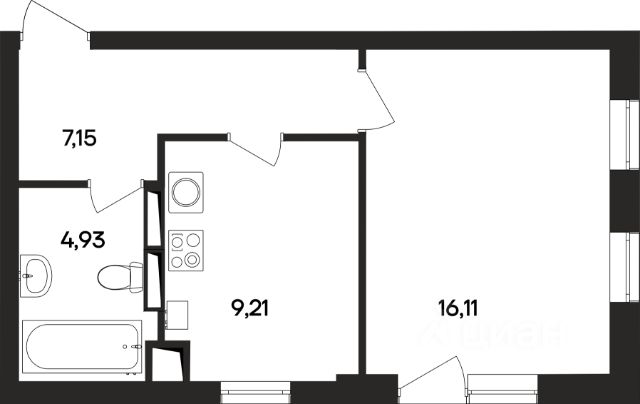 * Жилая зона 15,11 м²: Вместительная, светлая, без внутренней отделки. Большие окна наполняют квартиру солнечным светом и свежим морским бризом! .