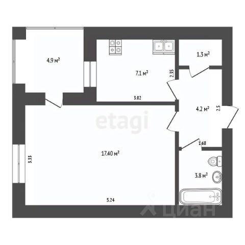 Дом 2017г постройки, на 2/9 эт., потолки 2,8м, общей площадью 47 м2., жилая 18 м2., просторная кухня 12 м2, коридор 9,2 м2, с/у совмещённый 4 м2, лоджия.