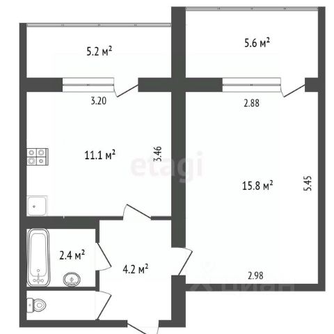 ПЛОЩАДЬ: 42.2 м² (полноценная 1-комнатная).