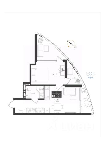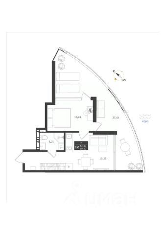 Однокомнатная квартира в жилом комплексе Комфорт-класса "Бакунинский". Площадью 54,45 кв. м.