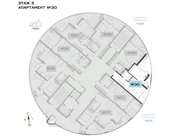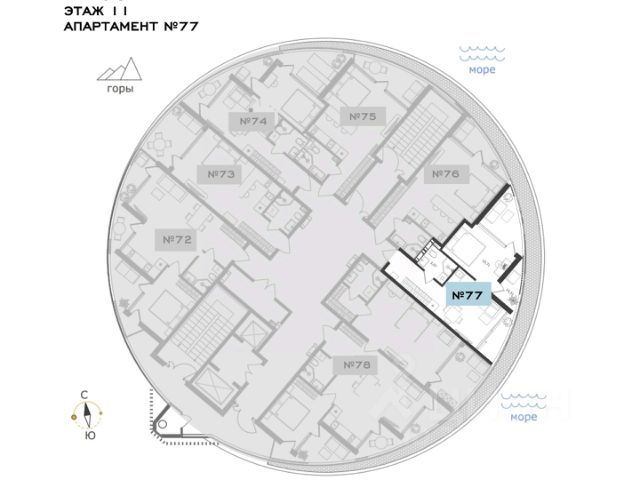 Просторная однокомнатная квартира с изолированной спальней, окна квартиры выходят на могущественные горы и вечнозелёный Ялтинский лес. Квартира видовая, расположена на 11 этаже жилого комплекса "Бакунинский".