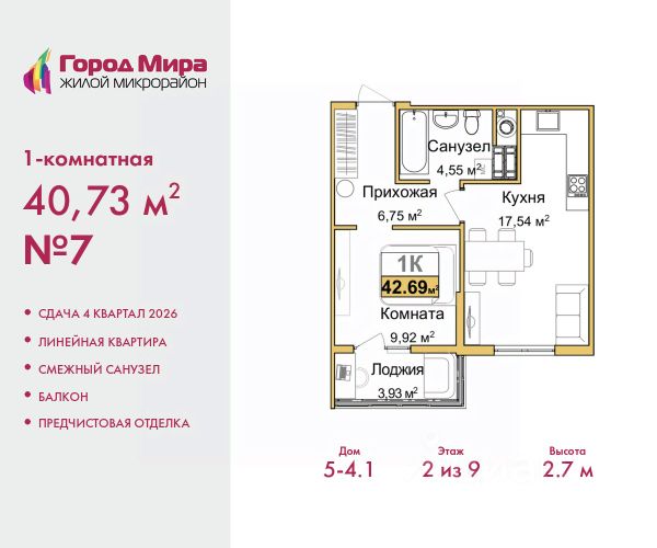 Продается 1-комн. квартира от застройщика с предчистовой отделкой в ЖМ "Город Мира" на 5 этаже. Общая площадь: 43.58 кв.м., жилая: 12.4 кв.м., площадь просторной кухни-столовой: 16.7 кв.м. Все окна выходят на одну сторону. В квартире одна лоджия, один совмещенный санузел. Высота потолков 2.7 м. Квартиры в ЖК "Город Мира" ваш комфорт начинается здесь! "Город Мира" это масштабный жилой комплекс, созданный для тех, кто ценит комфорт, безопасность и гармонию с природой. Здесь продумана каждая деталь: от удобной инфраструктуры до эргономичных планировок квартир. В 2024 году микрорайон "Город Мира" победил в номинации "Лучший экологический проект года в сфере строительства" по версии премии Crimea Urban Awards. Почему выбирают наш комплекс: - Зеленый оазис живите среди природы в черте города. - Всё под рукой 2 детских сада, магазины, фитнес, медицина. - Безопасность: закрытая территория с видеонаблюдением. Наши квартиры: - Просторные планировки с кладовыми. - Лоджии с остеклением. - Автономное отопление: платите только за реальное потребление. - Предчистовая отделка, включает стяжку пола, без штукатурки стен. - Консьерж-сервис и подземный паркинг. Инфраструктура комплекса: - Детские и спортивные площадки. - Зоны отдыха с беседками. - Фитнес-клубы и салоны красоты. - Будущая школа на территории, уже функционируют два детских сада. Выгодные условия покупки: - Ипотека от 5,5%, военная ипотека от 5,5%. - Рассрочка. - Материнский капитал на первоначальный взнос. Квартира находится в корпусе 5_4.3. Дом монолитный, одноподъездный, высотой 9 этажей. В подъезде 1 грузовой лифт. Окончание строительства - 4 квартал 2026 года. Оформление сделки по договору долевого участия. #Z6DOfM