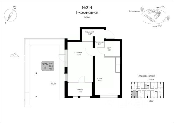 Купить 1-комнатную квартиру рядом со школой в республике Крым