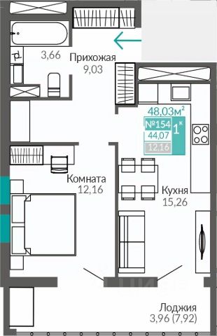 -  С/у, площадью 4.1 м2
