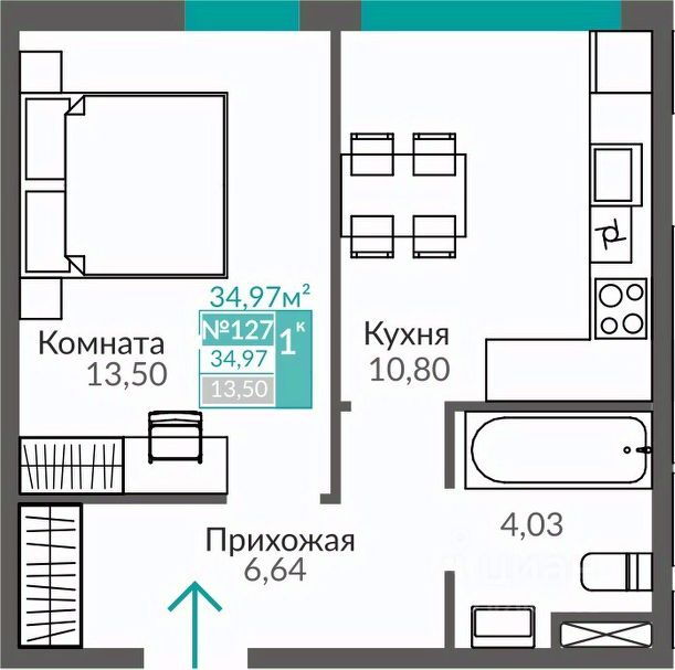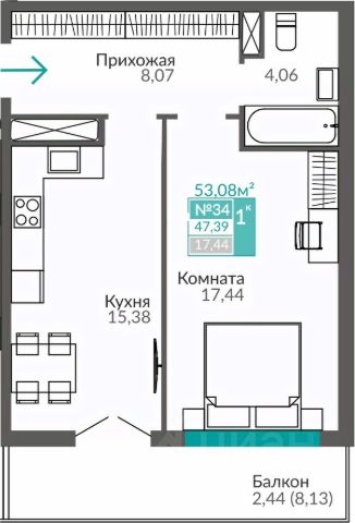 - Площадь 31,3 м2