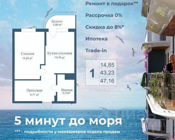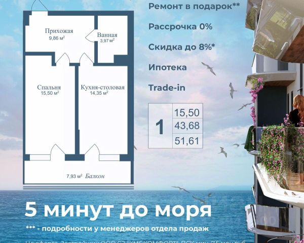 АКЦИИ: * Ипотека от 40 000 руб. в месяц * Рассрочка 0% до 2028г. * Бронь на 30 дней * 5 мин до моря пешком, планировки от 30 кв.м. * Высота потолков 3 м , предчистовая и чистовая отделка * Доходность инвестиций от 40% годовых. * Сдача в аренду от управляющей компании (доверительное управление) позволяет получать доход от сдачи апартаментов без вашего участия * Безопасная сделка по ФЗ-214/эскроу-счёта "Аллея Дружбы" — это комплекс апартаментов бизнес-класса в Евпатории, расположенный в 5 минутах прогулки от золотистых пляжей Чёрного моря. Два современных 12-этажных корпуса с панорамными видами на море объединены стильным стилобатом с центральным входом и бутиковыми retail-площадями, а закрытая территория и подземный паркинг обеспечивает приватность и безопасность. АРХИТЕКТУРА И КОНСТРУКТИВНЫЕ ОСОБЕННОСТИ: • 12-этажное здание в авторском архитектурном стиле • Высота потолков (от 2,9 м до 3,1 м) • Эксклюзивное решение для первых этажей (высота потолков 3,4м) • Евро планировки с террасами и гардеробными • Панорамное ламинированное остекление • Индивидуальные келлеры • Видовые лоты на море • Высокоскоростные лифты по концепции 5* отеля • Предусмотрено резервное электроснабжение • По проекту предусмотрено место для кондиционера и практическое решение для маскировки коммуникаций ЛОКАЦИЯ И ОКРУЖЕНИЕ: • До центра Евпатории - 7 минут на машине • Пляж - всего 5 минут пешком • Рядом с комплексом развитая инфраструктура (рестораны, магазины, кафе, медицинские учреждения, санатории) ГОСТЕПРИИМСТВО И БЕЗУПРЕЧНЫЕ СЕРВИСЫ: • Управляющая компания премиум-класса • Консъерж-сервис 24/7 • Доставки продуктов и готовой еды • Зона ресепшн оформлена в стилистике комплекса • Лобби с атмосферным кафе и зонами для чтения • Премиальное решение для мест общего пользования • Интерактивная детская комната для самых маленьких • Пункты выдачи товаров от маркетплейсов • Гостевые парковочные места • Организовано место для хранения колясок ваших малышей • Ремонт на выбор "Комфорт-формат" и "Гранд-формат" БЕЗОПАСНОСТЬ И ТЕХНОЛОГИИ СПОКОЙСТВИЯ: • Закрытая территория, двор без машин • Система контроля доступа (строго по электронным пропускам) • Подземный паркинг с тремя типами машиномест • Выделенные места для велосипедов • Камеры видеонаблюдения • Круглосуточный ресепшн • Телеметрия - автоматический сбор и передача данных с приборов учета апартамента минимизирует ошибки и мошенничество • Система умного апартамента с дистанционным управлением БЛАГОУСТРОЙСТВО ТЕРРИТОРИИ: • Ландшафтный дизайн по проекту (2 334 м² озеленения) • Прогулочные аллеи и зоны отдыха для расслабления и медитации • Коворкинг-зоны с высокоскоростным Wi-Fi для бизнес-переговоров • Детские и спортивные площадки • В апарт-комплексе вас ждут мини-маркет и магазин повседневных товаров • Специальное пространство для курения • Выделенная площадка для игры в волейбол и баскетбол РЕЛАКС И ДОСУГ: • На территории комплекса 2 отдельных бассейна: летний бассейн с выделенной зоной для детей и крытый те