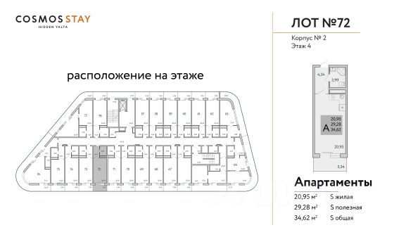 ГОТОВЫЙ БИЗНЕС ПОД КЛЮЧ ДОХОД ОТ 1 000 000 руб. с первого года деятельности отеля. Продаются апартаменты от Застройщика в строящемся комплексе COSMOS STAY HIDDEN YALTA, под управлением ведущего отельера в России COSMOS HOTEL GROUP (COSMOS HOTEL GROUP это Аккредитованная Управляющая компания международных гостиничных операторов). ИНВЕСТИЦИОННЫЕ ПРЕИМУЩЕСТВА КОМПЛЕКСА: - Первый COSMOS STAY в Ялте - Гостиничный номер с ремонтом, мебелью и техникой - Управление номерным фондом командой COSMOS - Прозрачность управления - Гарантированная круглогодичная загрузка комплекса - Глубокое знание и владение бизнесом - БИЗНЕС-МОДЕЛЬ Будущего: круглогодичный и пассивный доход - Среднегодовая доходность 22 % О КОМПЛЕКСЕ COSMOS STAY HIDDEN YALTA это комплекс апартаментов из 5 корпусов для отдыха с собственной развитой инфраструктурой. Находится в Ялте у подножья горы Могаби на южном берегу Крыма, вблизи с живописным горнолесным заповедником, у подножья горы Ай-Петри. Из апартаментов комплекса открываются завораживающие виды на горные вершины и Черное море. ЭТАЖНОСТЬ КОРПУСОВ: до 9 этажей Срок сдачи объекта: IV-кв. 2026г. Квадратура апартаментов: от 25м2 до 80,4 м2. Апартаменты с отделкой и мебелью. ИНФРАСТРУКТУРА КОМПЛЕКСА - Лаунж-зоны - Спа-центр - Детские пространства и площадки для спорта - Всесезонный бассейн - Пространства для медитаций и занятий йогой - Ресторан и Лобби - Супермаркеты и аптека - Консьерж-сервис полного цикла обслуживания с управлением КОНЦЕПЦИЯ АПАРТ-КОМПЛЕКСА Предлагает уникальный формат отдыха в стиле Retreat. Здесь созданы идеальные условия комфортного отдыха, заботы о вашем ментальном и физическом здоровье, вдали от городской суеты, в окружении векового леса и природы. Здесь вы найдете всё необходимое для восстановления и перезагрузки. Рассрочка от застройщика, подробности уточняйте в Отделе продаж. Строительство ведется при проектном финансировании СБЕРБАНКА, согласно ФЗ-214. Продажа через эскроу-счета без комиссий и переплат.