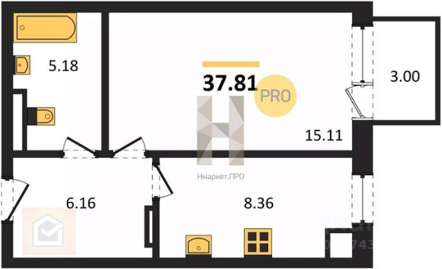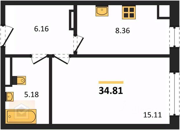 * Общая площадь 34,81 м²: Продуманное пространство без лишних перегородок! .