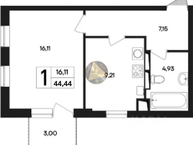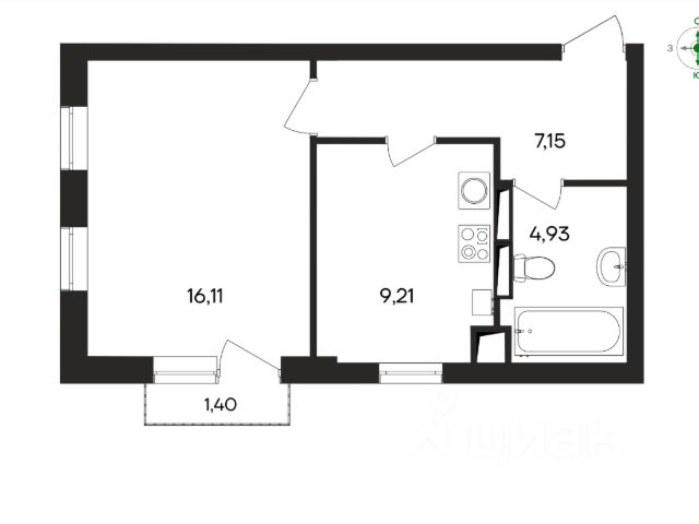* Жилая зона 15,11 м²: Вместительная, светлая, без внутренней отделки. Большие окна наполняют квартиру солнечным светом и свежим морским бризом! .