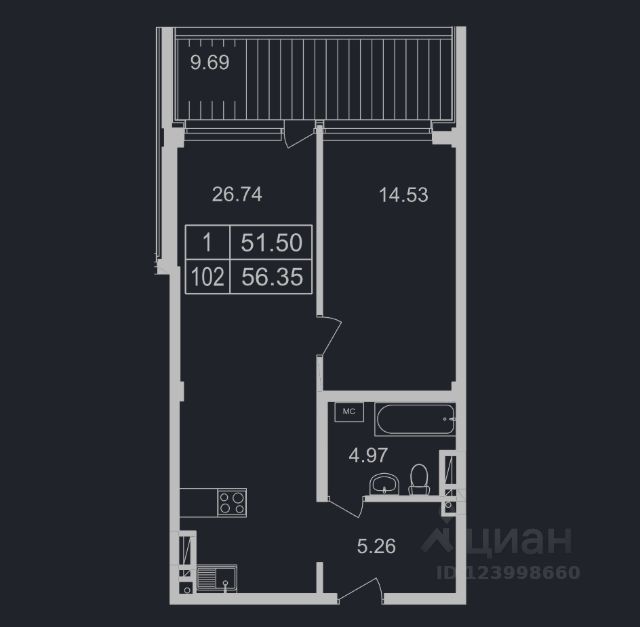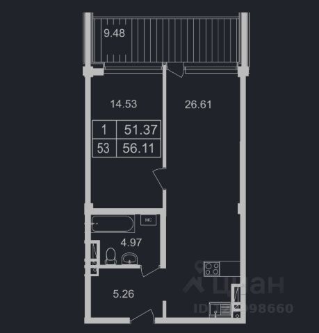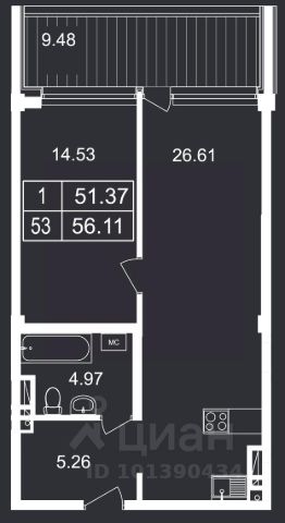 Сам апартамент включает в себя изолированную спальню с балконом, площадью 14 кв. м., наблюдать закаты и рассветы прям из своей спальни, не это ли сказка? Кухня-гостиная 18кв. м., Санузел и просторная прихожая, в которой можно выделить место под гардеробную.