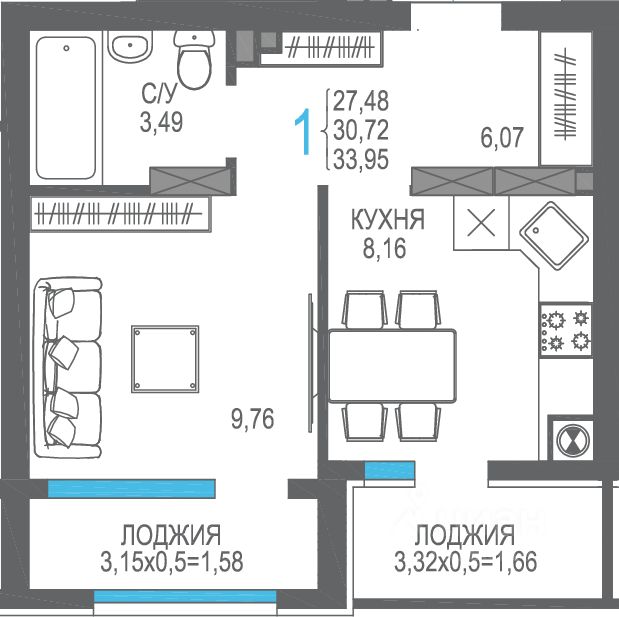 ✓ Цена за м²: 486,2 тыс. ₽/м²