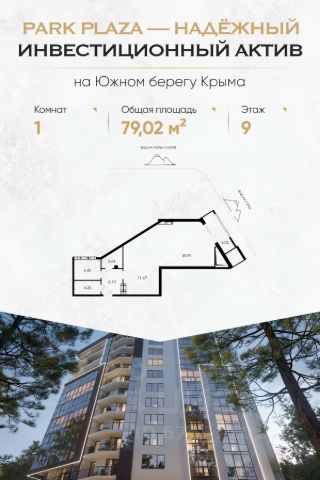 Продаются апартаменты общей площадью 62,77 м2 в премиальном комплексе апартаментов "Park Plaza" в самом сердце Алушты. Апартаменты N А-002 Видовые характеристики: горы Этаж: 2 Высота потолков: 3м. Варианты приобретения: — 100% оплата; — Беспроцентная рассрочка; — Ипотека от ведущих банков; Преимущества комплекса: — 150 м от моря, современная набережная Алушты; — В центре Приморского парка; — 150 метров до многофункционального спортивного комплекса;— Формат клубного дома; — Панорамные виды на побережье, горы и вечнозеленый парк. Инфраструктура: — Широкоформатные апартаменты, для тех, кто ценит простор и комфорт; — Видовая терраса 7,85 м2; — Лаундж зона на крыше; — Ресторан, детская игровая, тренажерный зал, химчистка; — Лобби с зоной ресепшн; — Подземный паркинг и келлеры. SERVISE Аll inclusive от собственной сервисной компании: трансфер до апарт-комплекса, подготовка апартаментов к вашему приезду, аниматоры на детский праздник, клининг-сервис, экскурсии и трансфер по Крыму, прокат спортивного инвентаря и яхт. Предоставление услуг под любой из ваших запросов! Комплекс реализуется по 214-ФЗ. Для записи на просмотр звоните в отдел продаж!