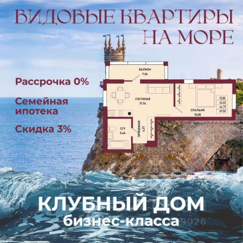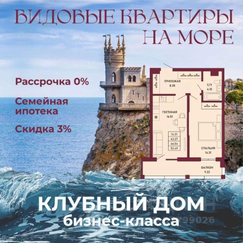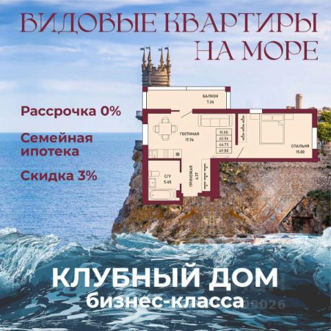 ЗВОНИТЕ ПРЯМО СЕЙЧАС, ЧТОБЫ ЗАБРОНИРОВАТЬ ЛУЧШУЮ КВАРТИРУ! - 80% ВИДОВЫХ КВАРТИРА НА МОРЕ ИЛИ ГОРЫ - Рассрочка 0% - Ипотека от СБЕРБАНКА - Доходность инвестиций от 40% годовых. - Безопасная сделка по ФЗ-214/эскроу-счёта Клубный дом "Ялта" — это воплощение изысканной жизни, где гармонично сочетаются статусность бизнес-класса, уют курортного отдыха и передовые технологии для комфортного проживания. Этот жилой комплекс создан для тех, кто ценит безупречное качество, безопасность и эстетику в каждой детали. Архитектура и дизайн * Современное монолитное 16-этажное здание * Фасады благородных оттенков: чистый белый, переливы шампань и тёплое золото * Первые этажи комплекса представлены в отделке рустовым камнем * Авторские интерьеры мест общего пользования * В темное время суток здания подчёркивает подсветка Характеристики квартиры и мест общего пользования * 80% лотов — с панорамными видами на море и горы. * Просторные балконы * Вместительные гардеробные и кухни-гостиные * Высокие потолки квартир 2,8 м Инфраструктура для комфортной жизни * Инфинити-бассейн * Ландшафтный дизайн и озеленение придомовой территории комплекса * Скоростные грузопассажирские лифты, соответствующие стандартам 5*-отелей, с прямым доступом в паркинг. * Кафетерий и магазин у дома * Детский веревочный комплекс "Парк-Маугли" * Скалодром * Финская сауна, хамам * На 1 этаже жилого комплекса - лапомойка и гостевой туалет Безопасность и технологии спокойствия * Закрытая территория, контролируемый доступ * Видеонаблюдение по всему периметру комплекса * Электронные домофоны с индивидуальными ключами с доступом * Безбарьерная среда * Подземный паркинг * Келлеры * Зоны хранения для велосипедов, самокатов и колясок * Мотоместа Коммуникации и инженерия * Автономная газовая котельная на крыше * Телеметрия * Класс энергоэффективности жилого комплекса "А+" * Места для кондиционеров и практическое решение для маскировки коммуникаций Расположение и ближайшие пляжи * 2,9 км до моря 10 мин на машине * 2 км от центра Ялты * Пляж Приморский — 30 мин пешком / 10 мин на авто * Пляж Массандровский — 20 мин на машине