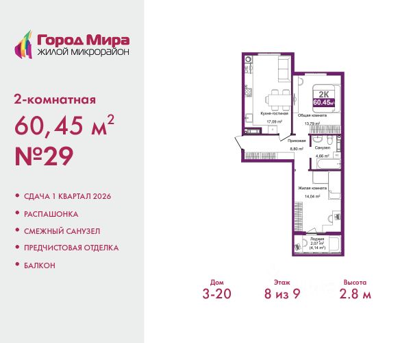 Современный жилой квартал "ОМЕГА" расположен в одном из самых престижных районов в центре Симферополя. Является концептуальным продолжением знакового ЖК бизнес-класса "АЛЬФА". Спроектирован с прямым выходом на благоустроенную набережную р. Салгир протяженностью более 5 км. Уникальность расположения дополняют близость к заповеднику Неаполь Скифский, Скверу Мира и Скверу им. Потемкина, Воронцовскому и Детскому паркам. Для комфортной жизни квартиры спроектированы так, чтобы жители получили максимум полезного пространства, не переплачивая за лишние квадратные метры. Просторные кухни-гостиные, компактные и уютные спальни, эргономичные санузлы и функциональные прихожие. Для любителей эксклюзивных форматов: • квартиры с видовыми террасами и патио, • просторные таунхаусы и пентхаусы. О жилом квартале • высота потолков до 4 м • остекление панорамное • гардеробные • телеметрия • велосипедные и колясочные в доме • дизайнерская входная группа • умный дом, видеодомофон, мобильное приложение • охраняемая территория, видеонаблюдение 24/7 • двор без машин, капитальный паркинг • зоны отдыха с ландшафтным дизайном • торгово-офисный центр, • панорамный ресторан, • спортивный комплекс со СПА, • супермаркет. Возможна покупка в ипотеку на выгодных условиях. Записывайтесь на экскурсию! Купить 2-комнатную квартиру площадью примерно 60 м2 (кв.м.) в Симферополе.