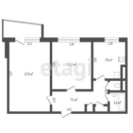 Общая площадь 50.2 кв. м., жилая 30.7 кв. м., кухня 7.2 кв. м., коридор 6.5кв. м.