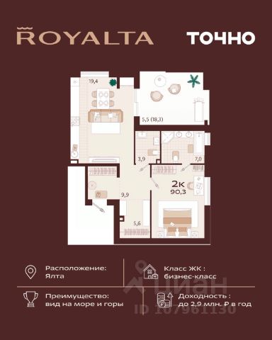 ЖК "Миндаль" эко-квартал в окружении миндальных деревьев, сочетающий в себе городской уровень комфорта, санаторное оздоровление организма и ощущение уюта загородной жизни. Мягкий субтропический климат. Солнце сияет 2250 часов в году. Купальный сезон - 6 месяцев. Дом находится на самой видовой из трёх вершин ялтинского горного амфитеатра, холме Дарсан, с которого открывается панорамный вид на захватывающие дух крымские горы и сверкающую гладь манящего Чёрного моря. Жилой квартал "Миндаль" расположен в Ялте — природной сокровищнице южного берега Крыма, почти круглогодично залитой солнечным светом. В пяти минутах езды от ялтинской набережной и благоустроенного пляжа. В шаговой доступности — парки с целебными растениями, аллея с потрясающими воображение миндальными деревьями и ялтинский горно-лесной заповедник. Безбарьерная среда, уличное пространство квартала удобно и безопасно для всех жителей благодаря безбарьерной среде и полному отсутствию автомобилей. Трёхэтажная подземная парковка на 98 парковочных мест, зарядки для электромобилей и автомойка. Детская игровая площадка, игровая зона выполнена из экологичных и безопасных материалов, позволяющих маленьким жителям развивать ловкость и сообразительность. В доме есть детская игровая комната с системой видеонаблюдения, где квалифицированный персонал организует досуг для ребят разных возрастов. Аллея с целебными растениями, места для спокойного отдыха можно найти на всей территории: лавочки и деревянные настилы окружены целебными крымскими растениями. Консьерж-служба решит любые бытовые вопросы: такси, билеты в театр или на самолёт, вызовет мастера по ремонту, организует уборку, отправит подарок. Зона спорта включает спортзал с отделением для фитнеса и йоги. ЅРА-зона имеет сауну с хамамом и холодной купелью. На территории оборудована зона Воркаута с разнообразными тренажерами, турниками и спортивными снарядами. В здании паркинга есть кладовые места. Внутри дома предусмотрено место для хранения сезонных вещей и спортивного инвентаря. Продается 2-комнатная квартира 90 м2 в Ялте.