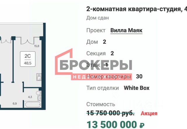 🔷 Средняя цена продажи: | 17,5 млн руб. |