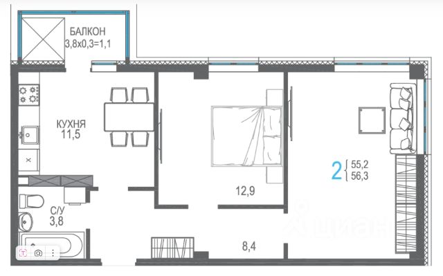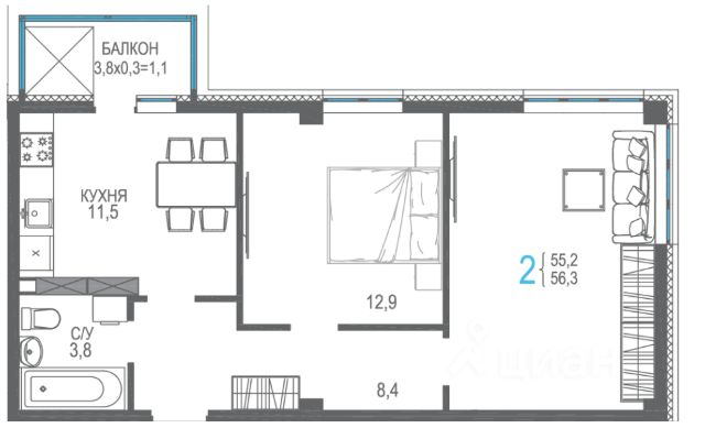 Самая удачная планировка двухкомнатного апартамента в данном корпусе. Дом построен и сдан . Лучшая цена и последний лот с такой планировкой.