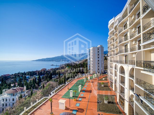 ЭТО НАСТОЯЩИЙ ЭКСКЛЮЗИВ! ЦЕНА НА 10 000 000 РУБЛЕЙ НИЖЕ ЧЕМ ОТ ЗАСТРОЙЩИКА!!! ТАКИЕ СДЕЛКИ ДОСТАЮТСЯ ТОЛЬКО НАСТОЯЩИМ ВЕЗУНЧИКАМ! Продаётся самая видовая квартира в ЖК "Никитский дворец". Срочная продажа! Цена снижена на 25%! Площадь 98,8 кв.м. Из квартиры открывается с одной стороны панорамный вид на море через зелёный лесной массив. С другой стороны панорамный вид на горы. Статус квартира с пропиской. За счёт того, что окна квартиры выходят в две стороны квартира хорошо проветривается и летом в период жары ночью возможно спать без кондиционера. В квартире выполнен предчистовой ремонт, установлены перегородки, отштукатурены и отшпаклёваны стены, залита стяжка, что уже экономит около миллиона на выполнении ремонта. Два балкона позволяют жить максимально комфортно. На одном балконе можно расположить зону солярия с лежаком. На втором балконе в тенистой стороне можно установить ротанговую террасную мебель и организовать лаунж зону. Спальня расположена на теневой стороне и выходит на север, а так как северная сторона освещается солнцем всего 2 часа в день здание с этой стороны никогда не нагревается, что позволяет максимально комфортно спать. Два санузла, большая кухня-гостиная придают максимальный комфорт как для отдыха, так и для постоянного проживания! Планировка: - Гостиная 32,9 кв.м. - Кухня 9,4 кв.м. - Спальня 23,3 кв.м. - Санузел 1 6,9 кв.м. - Санузел 2 1,9 кв.м. - Холл 10,7 кв.м. - Терраса 7,3 кв.м. - Балкон 6,4 кв.м. О жилом комплексе "Никитский дворец": Жилой комплекс "Никитский дворец" Ваша ялтинская резиденция на стыке истории, природы и современного комфорта. Именно здесь, в ЖК "Никитский дворец", вас ждёт не просто недвижимость бизнес-класса, а приватное владение на легендарной Крымской Ривьере. Каждая деталь этого места создана для тех, кто ценит безупречный стиль, бескрайние морские панорамы и единение с природой, не жертвуя преимуществами современной инфраструктуры и технологий. Архитектура, вдохновлённая очарованием Старой Ялты. Архитектурный облик "Никитского дворца" это элегантная дань утончённому курортному стилю Ялты XIX-XX веков. Фасады Жилого комплекса "Никитский дворец", выполненные с применением материалов и технологий австрийской компании Baumit, украшены нарядными арками и ажурными ограждениями балконов, которые переносят вас в эпоху изящной южной архитектуры. В вечернее время эффектная подсветка подчёркивает изысканные линии зданий, создавая неповторимый сказочный образ. Ключевой особенностью ЖК "Никитский дворец" являются панорамное остекление квартир от ведущих немецких и европейских производителей (Schuco, AGC Energy Light), которое не только обеспечивает беспрепятственный доступ солнечного света, но и открывает из каждой гостиной и спальни, захватывающие дух виды на Чёрное море и живописные горные склоны. Просторные открытые балконы и террасы, включая эксклюзивные пентхаусы на верхних этажах, становятся вашим личным пространством для наслаждения воздухом, насыщенным ароматами хвойного леса и мор