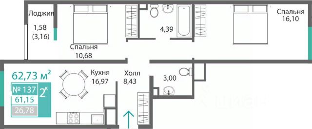 🔷 Средняя цена за м2:154,1 тыс. руб./м²