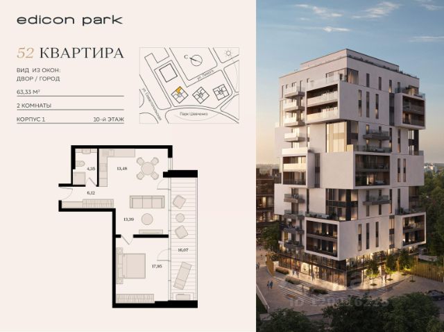 Из окон откроются панорамные виды на городские пейзажи, парковую зону, озеро.