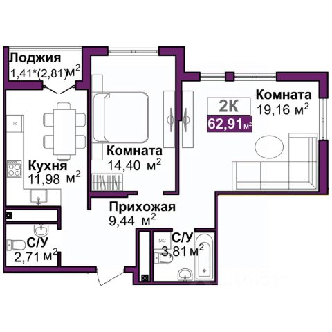 - удобные двухкомнатные от 64,6 м