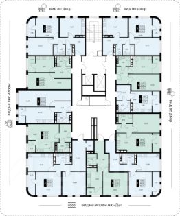 Пентхаус находится последнем этаже 8-этажного дома, площадью 132,5 м², плюс открытая терраса 174 м² с панорамным видом на море, горы, старинный Гурзуф, знаменитую гору Аю-даг, а также на скалы Адалары.