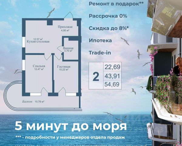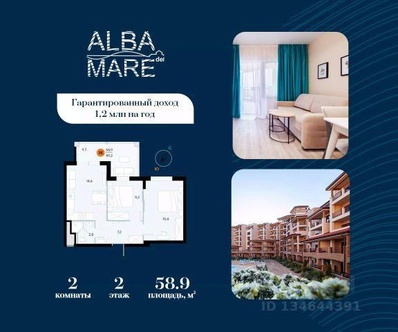 Продаются апартаменты в построенном комплексе. Срок сдачи 4 квартал 2024 года. Альба Дель Маре это комплекс апартаментов бизнес-класса с развитой инфраструктурой. Уютные здания переменной этажности строятся в 5 минутах ходьбы (385 метров) от одного из лучших пляжей Евпатории "Супер Аква Бич". Широкая береговая линия, места для активного отдыха и зоны релакса позволят насладиться отдыхом на любой вкус. Архитектурное решение комплекса создает истинное ощущение Средиземноморья и присутствия на дорогом курорте: скатные черепичные крыши, козырьки и навесы-перголы, арочные завершения проемов, цветовая палитра отделки и фасадов, где используются оттенки желтого, охры, терракоты и бежевого. Переменная этажность здания формирует камерность проекта, создавая прекрасные видовые характеристики для каждого апартамента. Просторные террасы с видом на море, патио с собственным выходом к бассейну на первых этажах комплекса, детская и спортивная площадки, ландшафтный дизайн здесь все создано для роскошного отдыха и расслабления. Территория комплекса апартаментов закрыта и находится под круглосуточным видеонаблюдением, что позволит резидентам и гостям чувствовать безопасность проживания. Концепция комплекса: комфорт проживания с первых дней заселения. Реализация апартаментов осуществляется с полной отделкой под ключ. Собственники апартаментов имеют возможность поручить управление недвижимостью профессиональному оператору, что позволит получать стабильный доход. Автономная газовая котельная позволит не зависеть от внешних отключений отопления., парковочные места на закрытой территории комплекса обеспечат безопасность вашему автомобилю, система центрального кондиционирования создаст комфортную температуру в каждом номере. Жилой комплекс реализуется в соответствии с 214 ФЗ.