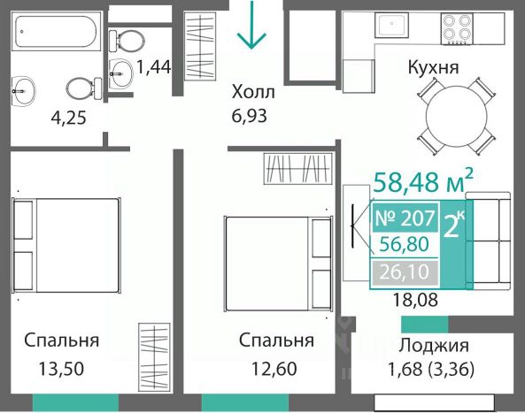 Продаётся 2-комнатная квартира в строящемся доме (Этап 16 (Секция В9)), срок сдачи: II-кв. 2027, общей площадью 66.96 кв.м., на 2 этаже. В жизни каждого наступает момент, когда мы понимаем, что выросли. Приходит время твердо идти вперед, расширять границы и открывать новые горизонты. Городской округ "Горизонты" - прекрасен для первого собственного жилья, идеален для выхода на новый уровень сбалансированной и легкой жизни.